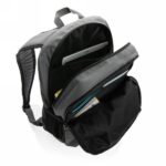 The Impact AWARE™ 300D RPET casual backpack offers plenty of storage. The front zip pocket provides secure small-item storage for quick access. A middle compartment holds 2 open pockets and the main compartment features a 15 inch laptop compartment. Comfortable shoulder straps and 2 outer mesh pockets for your bottles. Perfect for carrying your gym gear or to go on a hike. The exterior is made with100% 300D recycled polyester, the lining is 100% 150D recycled polyester. With AWARE™ tracer that validates the genuine use of recycled materials. Each bag saves 9.2 litres of water and has reused 15.39 0.5L PET bottles. 2% of proceeds of each Impact product sold will be donated to Water.org.