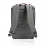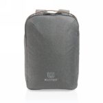 Look sharp in and out of the office with this sleek looking minimalistic design backpack. Enjoy traveling comfortably with the backpack that’s equipped with padded shoulder straps and back panel. The main compartment features a 15.6 inch laptop compartment and two open mesh pockets. On the top you can find a PU handle. The exterior material and lining is made with recycled polyester. With AWARE™ tracer that validates the genuine use of recycled materials. Each bag saves 5.4 litres of water and has reused 9.01 0.5L PET bottles. 2% of proceeds of each Impact product sold will be donated to Water.org. PVC free.