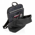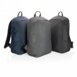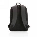 Go to school or off to work carrying all your daily essentials safely protected in this Impact AWARE™ RPET anti-theft backpack! Incorporating a 15.6″ padded laptop pocket. This lightweight and durable backpack features a compact and minimalist construction. Inside there is one RFID sleeve pocket. With luggage strap on the back. The exterior is made of 300D recycled polyester, the lining is 150D recycled polyester. With AWARE™ tracer that validates the genuine use of recycled materials. Each bag saves 11.9 litres of water and has reused 19.9 0.5L PET bottles. 2% of proceeds of each Impact product sold will be donated to Water.org. PVC free.