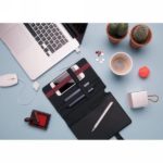 Refillable A5 notebook sleeve with intelligent organization system for gadgets inside. Store your pen into the spine. Rubberized woven elastics can hold up to 5.8 inch gadgets for instance iphone 7 Plus or galaxy S8. 128 pages of 80g/m2 inside. Cream coloured pages. Registered design®