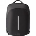 Laptop backpack 15″, weight reduction system, zipped main compartment, zippers can be block by combination lock (3 digits), internal pockets, USB connection (power-bank not included), adjustable shoulder straps