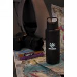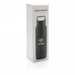 Double wall flask. 304 SS inside and ABS plastic outside. Engrave your logo and it will be lit up when the flask is picked up. Including 2 CR2032 cell battery Content: 485 ml.