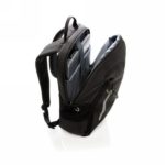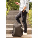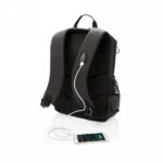 Simple, practical and durable everyday backpack with 2 side pockets for water bottles or your umbrella. Convenient USB output on the strap. Padded 15″ compartment for laptop computer as well as several spacious compartments and RFID protected sleeve pockets. Registered design®