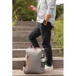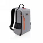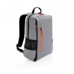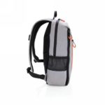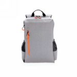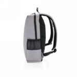 Simple, practical and durable everyday backpack with 2 side pockets for water bottles or your umbrella. Convenient USB output on the strap. Padded 15″ compartment for laptop computer as well as several spacious compartments and RFID protected sleeve pockets. Registered design®