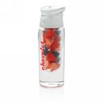 Trendy infuser bottle to flavour your water with your favourite fruit or herbs. The body is made out of tritan material so it is scratch proof and durable. The lid is made out of ABS and has a locking system so you can take your flavoured water wherever you go. Capacity 700 ml.