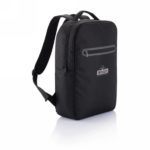 300D polyester laptop backpack with 1 main compartment which has a separate tablet pocket and an organizer. PVC free.