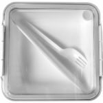 Lunch box 920 ml, transparent lid and silicone closure, additional loose triangular compartment and fork included