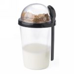 Lunch box 450 ml, mug with separate compartment on top and coloured ring that holds spoon