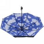 Manual umbrella, foldable, panels, velcro closing, underside of canopy can have clouds or rain drops design, sleeve included