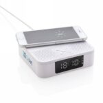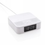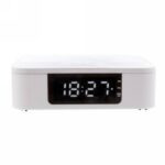 Modern wireless speaker with integrated wireless charging pad and alarm clock function