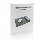 PU mousepad with integrated wireless charging pad to charge all mobile devices that support wireless charging (Android latest generations, iPhone 8 and up). The wireless charging part can be also used as stand for your mobile device. Including 40 cm micro USB cable to connect the mousepad to the USB port of your computer. Input: 5V/1A. Wireless output: 5V/1A 5W.