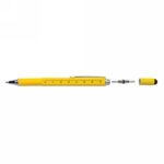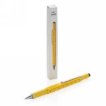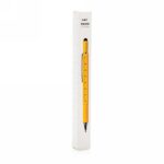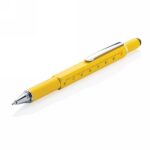 Multifunctional ball pen 5 in 1, 7 cm ruler, spirit level, screwdriver, touch pen, made of high quality brass, aluminium clip, writing length up to 400 m