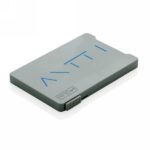 This card holder can hold a maximum of 4 cards or 3 embossed cards. Its designed to block RFID readers from electronic pickpocketing. The slider on the side will push the cards up. Registered design®