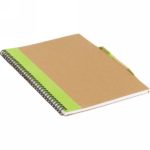 Notebook (approx. A4, 70 blank sheets) with matching cardboard pen with biodegradable trim parts