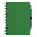 Notebook (70 blank sheets) with cover made of recycled carboard and matching colour recycled carboard ball pen, spiral binding