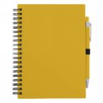 Notebook (70 blank sheets) with cover made of recycled carboard and matching colour recycled carboard ball pen, spiral binding
