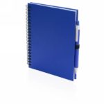 Notebook (70 blank sheets) with cover made of recycled carboard and matching colour recycled carboard ball pen, spiral binding