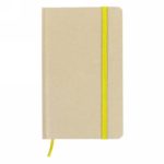 Notebook (approx. A6, 100 blank sheets), recycled cardboard cover, ribbon marker and elastic band for closing