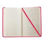 Notebook (approx. A6, 96 squared sheets), ribbon marker, elastic band for closing