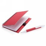 Notebook (approx. A7, 50 lined sheets) with matching colour ball pen, spiral binding