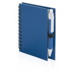 Notebook (approx. A7, 50 lined sheets) with matching colour ball pen, spiral binding
