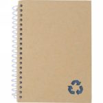 Notebook (approx. B6, 72 lined sheets made of stone paper), hard cover made of recycled cardboard, spiral binding. Stone paper is made of mix of 80% calcium carbonate and 20% HDPE, which makes it resistant to splashing, dirt and tearing. The product is environmentally friendly, because water and wood are not used during production.