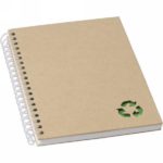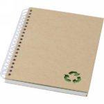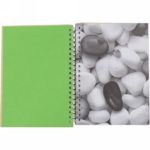 Notebook (approx. B6, 72 lined sheets made of stone paper), hard cover made of recycled cardboard, spiral binding. Stone paper is made of mix of 80% calcium carbonate and 20% HDPE, which makes it resistant to splashing, dirt and tearing. The product is environmentally friendly, because water and wood are not used during production.