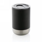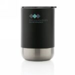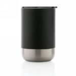 400 ml stainless steel outside and PP inside mug with lid and base in black.