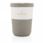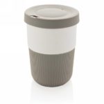 A sustainable alternative to traditional cups! Bringing style and practicality to your morning commute, this PLA coffee cup is ideal for transporting your favourite hot beverage. Manufactured from plant material (PLA), so not only stylish but also kind for the planet. Comes with a silicone grip and lid for your convenience. 100% melamine free. Capacity 330 ml.
