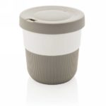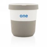 A sustainable alternative to traditional cups! Bringing style and practicality to your morning commute, this PLA coffee cup is ideal for transporting your favourite hot beverage. Manufactured from plant material (PLA), so not only stylish but also kind for the planet. Comes with a silicone grip and lid for your convenience. Fits conveniently under most coffee machines. 100% melamine free. Capacity 250 ml.