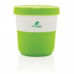 A sustainable alternative to traditional cups! Bringing style and practicality to your morning commute, this PLA coffee cup is ideal for transporting your favourite hot beverage. Manufactured from plant material (PLA), so not only stylish but also kind for the planet. Comes with a silicone grip and lid for your convenience. Fits conveniently under most coffee machines. 100% melamine free. Capacity 250 ml.