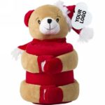 Soft toy holding fleece blanket (unfolded approx. 102 x 77 cm), includes tag for printing purposes (05-reindeer, 56-teddybear)