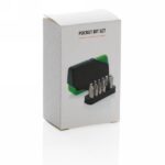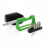 Easy to carry bit set with 12 bits and one 2” extender made from stainless steel. ABS casing with integrated holder for the bits. Bits included: 3 x TORX driver (10,15,25) 3 x Hex driver (3mm, 4mm, 5mm) , 3 x Philips drivers ( 1.8mm, #0 #2) 3 x flat drivers ( 1.8 mm, #3 #5) With belt clip to attach to belt or pocket