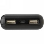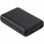 Power bank 10000, 4 diodes indicating power level, 2 USB outputs, input DC 5V/1.5A, output DC 5V/1A, 2.1A, cable included