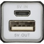 Power bank 2600 mAh, input 5V/1000 mA, output 5V/1000 mA, includes micro USB cable