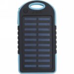 Power bank 4000 mAh, solar charger 5V/200 mA, rubberized finish, green diodes indicating power level, flashlight on the side, 2 USB ports and 1 micro USB port, input DC 5V/1A, output DC 5V/2x1A, USB cable included