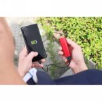 Power bank 5000 mAh with hanger, USB type C input 5V/2A, USB output 5V/2A, 4 diodes indicating power level, metallic colour, USB type C cable included