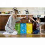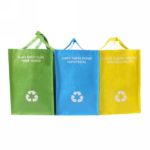Set of 3 recycle waste bags to separate glass, paper and plastic, bags are imprinted on the front and the back
