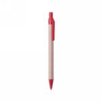Ball pen with recycled cardboard barrel and coloured details made of PLA