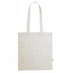 Shopping bag with long handles, made of recycled cotton