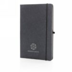 Write down all your notes and creative ideas with this A5 recycled leather hardcover notebook. Stylish and with a beautiful finish. The notebook features 80 sheets/160 pages of 70 gm/s white coloured lined recycled paper, a vertical elastic and a pen loop.