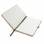 Write down all your notes and creative ideas with this A5 recycled leather hardcover notebook. Stylish and with a beautiful finish. The notebook features 80 sheets/160 pages of 70 gm/s white coloured lined recycled paper, a vertical elastic and a pen loop.