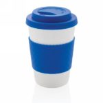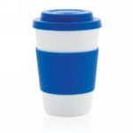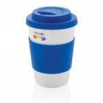 Stop single use! Bring your own cup and join the reuse revolution so you can contribute to a disposable free world. These lightweight and durable cups are perfectly suited to take your coffee on the go. These cups are reusable and made of 100% recyclable friendly PP material. 100 degree Celsius food safe approved. With silicone lid and sleeve. Dishwasher and microwave safe. Fits conveniently under most coffee machines. Content: 290 ml.