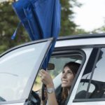 Reversible manual umbrella, 8 panels, special C shape handle for smartphone users
