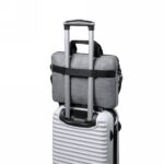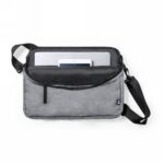 Laptop bag 15″, made of RPET, padded laptop and tablet up to 10″ compartment, zipped main compartment and front pocket, strap to fix the bag on the trolley handle, adjustable shoulder strap
