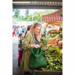 RPET shopping bag with long handles, foldable, large main compartment, wide handles for comfortable carrying, durable bottom without seams, fashionable design