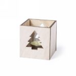 Vanilla aroma candle, in glass candle holder and wooden box with Christmas tree die-cut
