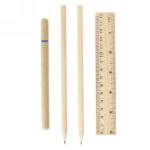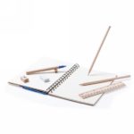 School set, notebook (approx. A5, 70 blank sheets), zipped pencil case, ball pen with recycled cardboard barrel, 2 pencils, ruler, pencil sharpener and eraser