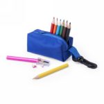 School set, pencil case with zipped main compartment and carabiner, 8 crayons and pencil sharpener