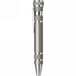 Pen shaped screwdriver with 4 flat head and 4 Philips screwdriver bits, with clip